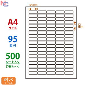 用 ホワイトマットフィルムラベル シートサイズ 210mm×297mm(A4) ラベルサイズ 35.0mm×12.0mm 面付 95面付 入数 1ケース 100シート入り ※ラベル個数:9,500片(100シー...