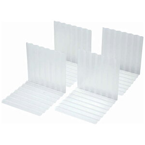 【商品解説】冷蔵庫内をスッキリ収納!組み合わせは自由自在。冷凍庫をすっきり整理できるブックエンド型仕切り板4枚セットです。中身を見やすく収納することで節約・節電にもつながります。波型のデザインで冷気の通りをよくするので