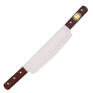 両手式の冷凍切り硬い冷凍肉やカボチャ餅切りにと力のいる作業にもってこいの包丁です。刃先を食材に食い込ませて、両側のハンドルをシーソーのように交互に押し切るようにして使います。力任せに切らずにすむため、女性でも硬い食材