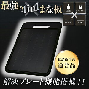 解凍×シャープナー×おろし器4in1まな板 まな板、解凍プレート、シャープナー、すりおろし器搭載!1つ4役の機能を果たす、まな板登場! まな板、解凍プレート、シャープナー、すりおろし器が搭載された4WAYまな板です。 通常のまな板とし