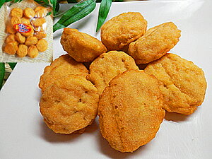 チーズ入りチキンナゲット。原材料名:鶏(国産)、粒状大豆たん白、プロセスチーズ、鶏皮、パン粉、小麦粉、食塩、ガーリックパウダー、衣(バッターミックス粉(コーンフラワー、小麦、その他)、打ち粉用ミック。