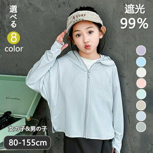 商品名:UVカット キッズ パーカー ラッシュガード 冷感 ひんやり 長袖 アウター 指穴 帽子 遮光 涼しい UVカーディガン 焼け止め 紫外線対策 吸湿速乾 アームカバー マスク UPF50+ UVカット98% 夏...