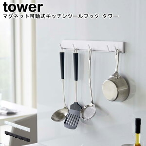 マグネット可動式キッチンツールフック 【関連キーワード】 磁石が付くキッチンパネルや冷蔵庫などに取り付けられる『 tower( タワー )マグネット可動式キッチンツールフック 』。フックは...
