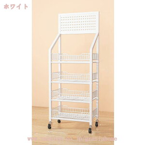 メイン素材:炭素鋼◆「カラー」ブラック ホワイト 「サイズ(cm)」幅60×奥行27×高さ140cm 「内容」本体+キャスター◆「大容量&多機能」本製品は果物や野菜だけでなく、本や雑誌などから、おもちゃ、おやつ、タオル、バス用品、調味料、