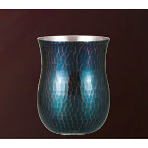 鎚目フリーカップ350ml 青被「世界で一つしかない手打ち鎚目シリーズ」 銅を100とした熱伝導率。優れた熱伝導性と高い保温力により、冷たい飲み物を注いだ直後から、容器全体が飲み物と同じ冷たさになって喉を潤し、指先や唇から伝わ