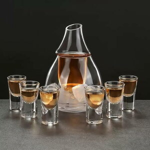 【素 材】水晶ガラス 【工 芸】手作り吹きガラス【サイズ】デキャンター - 高さ15センチメートル、口径3センチメートル、幅10センチメートル、重さ0.26キログラム、容量150ミリリットル。グラス - 高さ5.8センチメートル、直径...
