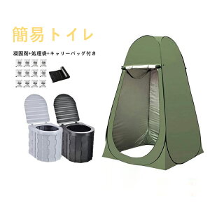 蓋付きポータブルトイレ+テント+12回分凝固剤+15個ゴミ袋+収納袋セット。便座一体型折りたたみ式ポータブルトイレです。 アウトドア、部屋や車の中、災害、断水の際に大活躍します。人間工学に基づいて設計されているので小さなお子様か