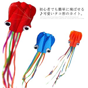 可愛いタコ形の大きい骨なしカイト。骨がないタイプで折れる心配なし、折りたたみで持ち運び楽々。空気が入りやすいデザインで少しの風があれば、綺麗に飛ばすことができます。本物のタコのような動きで自由自在に空を舞います。初め