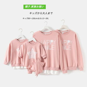 長袖 親子トップス ペアルック レディース ママ パパ 女の子 男の子 親子服 姉妹お揃い 記念撮影 お誕生日プレゼント 親子ペア 出産祝い ギフト 親子服/親子お揃い 子供服 ラウンドネック クル