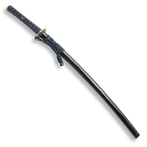 ご注文いただいてから製作しますので材料入荷後1週間〜1ヶ月程かかります。 【サイズ】 全長 103cm 刃渡 72cm 柄長 24cm ◆柄:笹波打濃紺色正絹巻 背取型柄下地 ◆刀身:超硬質軽量合金樋入刀身 ◆刃紋:井上真改写し 二...