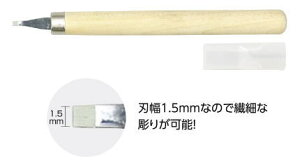■てん刻の石や、けしゴム印の削りに 最適な専用刀。 ■刃幅1.5mmなので 繊細な表現が可能。 ■木柄のため力が入りやすい。 ■安全キャップ付全長/130mm (刃幅1.5×長20mm)