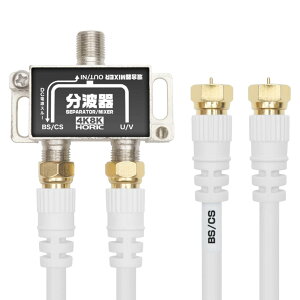 HORIC家電オーディオ関連AVケーブルコスパ◎のケーブル一体型4K8K対応分波器■地デジ放送、BS/CS放送をそれぞれ視聴したいときはコレ! 地デジ(UHF)と衛星波(BS/CS)を効率よく分け、1台のテレビで地デジ...
