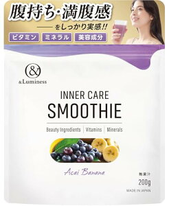 ◆商品名:アンドルミネス スムージー アサイー&バナナ風味 200g 置き換え ダイエット ビタミン ミネラル 美容成分配合豊富な栄養素と4種類の美容成分で、輝く美しさを内側からサポートする「インナーケアスムージー」です【133種類の植物