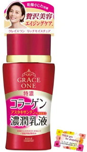 商品情報商品の説明商品の説明 年齢を重ねた肌にふさわしい、贅沢な保湿効果を提供する乳液です。まろやかな使い心地で、肌にたっぷりとうるおいを閉じ込めます。2種のコラーゲンと3種のヒアルロン酸GLが配合され、乾燥による小じわを