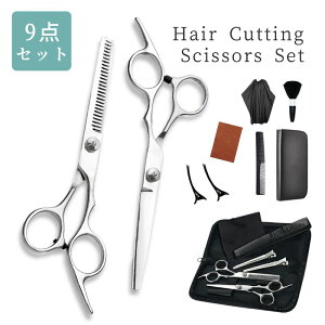 ◆商品名:散髪 はさみ ヘアカット シザー 9点セット【カットバサミ・すきバサミ】 ヘアピン くし 理容師 初心者 家庭用 子供の散髪 セルフカット ケース付き ◆高品質ステンレス製:プロ仕様の切れ味で...