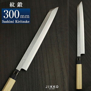 【仕様】●種別:刺身切付包丁(さしみきりつけほうちょう)●サイズ:刃渡り300mm ●鋼:青鋼二号(日立安来鋼) ●柄:八角水牛口輪柄 【おススメポイント】 こちらの紋鍛(もんたん)シリーズは、青鋼2...