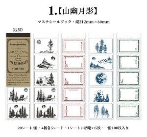 ◆平日16時迄のお支払いは当日出荷(土日祝を除く) 縦長マステシールブック、一冊100ピース入り 柄違い5枚シールが一枚のシートになり 一冊20シート入り、4柄×各5枚 マスキングテープ素材、程よい透け感が素敵 一冊に纏めたので、バラになら