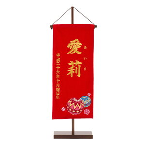 刺繍名前旗 飾台付 名前と生年月日の刺繍を入れてお届けします。 ご出産のお祝いや、桃の節句、端午の節句の脇飾りとして大人気商品です。 ●お届けまで通常10〜15日程度のお時間をいただきます。 ●一人のお子様のお名前のみのご注文に