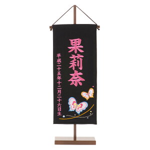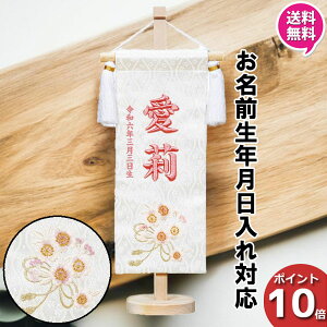 刺繍名前旗 飾台付 名前と生年月日の刺繍を入れてお届けします。 ご出産のお祝いや、桃の節句、端午の節句の脇飾りとして大人気商品です。 ●お届けまで通常10〜15日程度のお時間をいただきます。 ●一人のお子様のお名前のみのご注文に