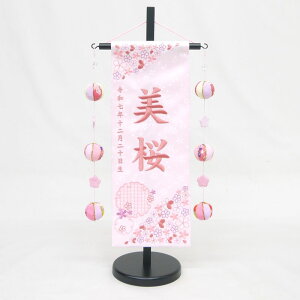 雛人形 名前旗 商品説明 サイズ (cm) 全体:間口18×奥行10×高さ39 旗のみ:12×30 仕様 内容 ◇飾り台付 ◇名入れ/紫刺繍 ◇薄ピンク ジャガード織 小桜生地 ◇お子様のお名前+生年月日を入れることができます。 ◇製...
