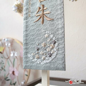 お子様のお名前を刺繍でお入れする名前旗 節句人形(ひな人形・五月人形・こいのぼり・兜)などと一緒にお飾り頂いたり お食い初めやお宮参り、七五三のお祝いの席にも最適です●お名前と生年月日が入るタイプで、...