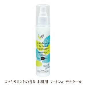 汗ばむお肌にシュッ!ひんやりクールダウン フィトンαならではの爽やかな森の香りで、 お出かけ先でもシュッとリフレッシュ! 消臭効果の高いチャ葉エキス、フィトンαを配合。 植物由来成分にこだわったボディスプレーです。 一般的な