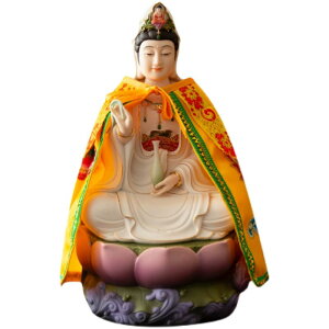 仏像 置物 マント 観世 菩薩 小さい ドレープ 蓮 刺繍 レッド イエロー 花柄 ディスプレイ レトロ 中国風 エスニック 調整可能