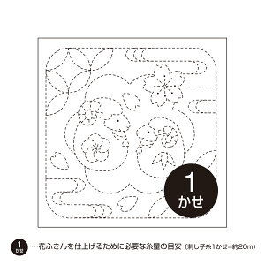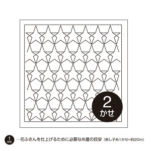 図案プリント済みの刺し子花ふきん布パックです。 ※キットではありません。 1かせ…花ふきんを仕上げるために必要な糸量の目安(刺し子糸1かせ約20m) ※図案は布にプリント済み...