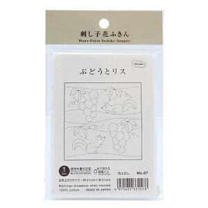 刺しゅう布 『刺し子 花ふきん 布パック ぶどうとリス 白 87』 Olympus オリムパス 水で洗うと消える図案プリント済み! 暮らしのインテリアとして、ちくちく、簡単に本格的な刺し子の伝統手芸をお楽しみいただけます...
