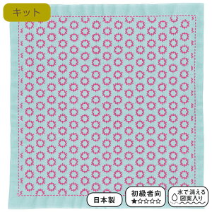ドットをガイドにして、自由な模様の花ふきんをつくることができます。 ●出来上がり寸法:約縦33cm×横33cm ●パック内容:晒木綿(綿100%)、作り方説明書●図案は布にプリント済み。刺した後は水で消せます...