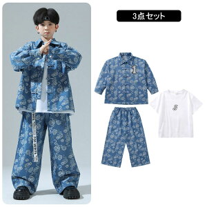 【商品紹介】商品名:ダス 衣装 ヒッホッ キッズ 刺繍糸 デニムセッ デニムパツ ジャケッ HIPHOP衣装 ユニセックス 中華風 2/3点セッ 前開きシャツ ジュニア ゆった K-POP ダボダボ かっこいい...