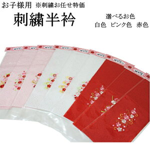 3歳から7歳対応の お子様用刺繍半襟です。 素材:ポリエステル100% 白色・ピンク・赤色の 3タイプ有りまして お選び頂けます。 ※刺繍部分は当店お任せと なっておりますので、 あらかじめご了承下さいませ。