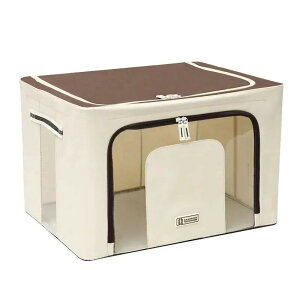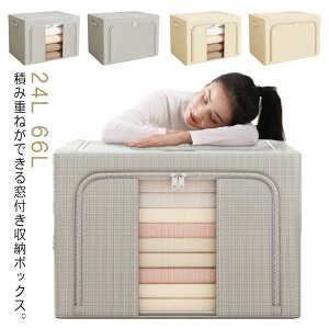 積み重ねができる収納ボックス 55L ◆中身が見える小窓付き サイドに窓が付いているので、 外から一目で中身を確認できます。 ◆便利な上部・前面ファスナー 上部と前面に取り出し口が付いているので、 重ねた