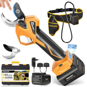 【35mmの切断直径】-Swansoft-8608電動剪定ばさみは、最大35mmの太さの枝を損傷することなく楽々と切断します。刃は高品質のスイス製SK5鋼にテフロンコーティングを施したもので、鋭さと耐摩耗性を確保しています...