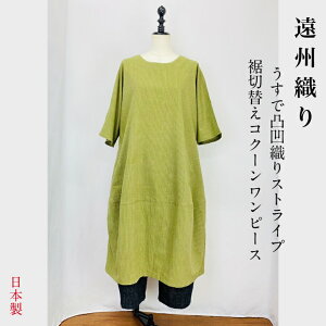 商品情報素材/材質綿100%(オーガニックコットン)遠州織物 みじん絣楊柳ボーダー日本製サイズ/寸法M〜L(フリーサイズ)バスト120cm着丈100cmその他商品説明遠州織物の絣を使用したワンピースです。裾の切替えによって、コクーン型になっ