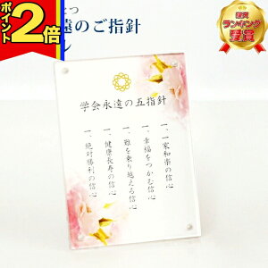 創価学会|学会永遠の五指針 アクリル 商品説明 クリア−な清潔感のあるアクリルの中に学会永遠の五指針の用紙を挟みました。 用紙には桜の花がうっすらと描かれています。 上部にはワンポイントで八葉マークが施されております...