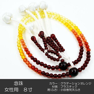 とてもキレイなグラデーション念珠! 商品説明サイズ女性用/8寸 (親玉から親玉までの幅:25cm) カラーグラデーションオレンジ 材質プラスチック 房(ふさ) 小田巻梵天ふさ お届け方法 【ネコポス(メール便)対応商品】 ヤマト...