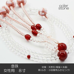 高級天然石念珠(桐箱入り) 一つ一つ手作業でお仕立てしています 商品説明サイズ女性用/8寸 (親玉から親玉までの幅:25cm) 材質瑪瑙×水晶 房(ふさ) 小田巻梵天ふさ(ピンク混合)(丈夫な絹製の糸を使用しています) 備考【ラッ...