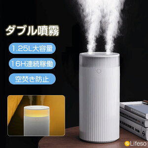 【1.25L大容量+ダブル噴霧】加湿器 卓上 二重除菌 携帯式加湿器 自動オフ 空焚き防止 転倒しにくい 抗菌タンク採用 最大16時間加湿 乾燥対策 リビング 子供部屋 家庭用 プレゼント