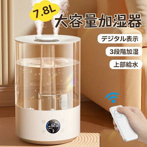 商品説明 商品特徴 製品名:大容量加湿器 保証期間:12ヶ月 容量:7.8L 製品サイズ:290*190*190mm 加湿方式:超音波 制御方法: タッチ/リモコン 加湿量:約450mL/h 加湿高さ:...