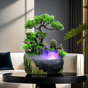 スタイリッシュなデザイン:TVTKEモダンな卓上噴水はシミュレーションランドスケープモデリングを採用しています、シミュレーションツリーとロックガーデンがあります、美しいスプレー効果は滝をリアルでユニークにします、噴水滝はあなたのゲスト...