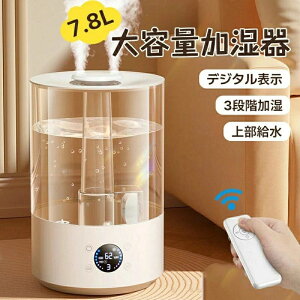 商品説明 商品特徴 製品名:大容量加湿器 保証期間:12ヶ月 容量:7.8L 製品サイズ:290*190*190mm 加湿方式:超音波 制御方法: タッチ/リモコン 加湿量:約450mL/h 加湿高さ: ?1.3 メートル 加湿モード...