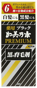●6種の有効成分を含んだ「ブラック処方※」が頭皮・毛根機能を整え、ふけ・かゆみや抜け毛を予防し、育毛に効果を発揮します。 ※薬用ブラック加美乃素PREMIUMの処方 ●植物由来の育毛成分が、頭皮・毛根の機能を整え発