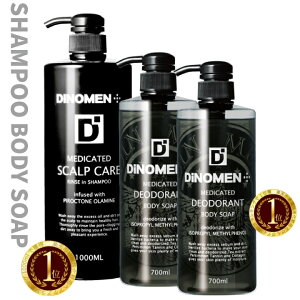 DiNOMEN 薬用スカルプケアリンスインシャンプー1000ml&薬用デオドラントボディソープ 700mlx2本 薬用成分配合 医薬部外品 頭皮ケアとカラダのニオイケアでモテる男へ。容量 シャンプー1...