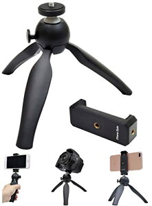 ■商品説明■ 卓上三脚 ミニ トライポッド & スマホホルダー ボールヘッド 折りたたみ式 三脚 スタンド 軽量 小型 自由雲台 カメラスタンド ハンドグリップ ホルダ / 写真 ビデオ 動画 撮影 ハンディ 雲台 (BLACK) 折...