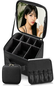 【メイクボックスのライト付きミラーは取り外し可能】強力マジックテープにより、鏡がメイクボックスに着脱可能で、卓上鏡として使用可能です。卓上ミラーには360°回転でき、角度を自由に固定することができます。鏡をお好みの角度・