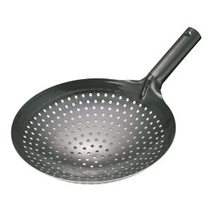 【18-0シャーレン鍋】 ●サイズ:φ240mm ●板厚:0.8mm ●重量:390g ■中華鍋で湯通しや揚げ物をするとき、食材をすくいあげたり、湯切り・油切りなどに使う鍋です。 ■ステンレス製なので丈夫で板厚が薄くて軽量です。