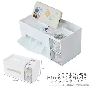 デスク上の小物を収納できる引き出し付きティッシュボックス。小物を収納できる引き出し付きで、アクセサリーを入れたり、メガネや文房具を入れたり、場所によっていろいろな小物を収納しておけます。お手入れしやすい水を弾くPP素材