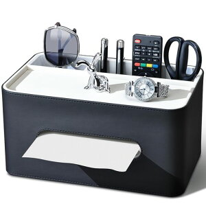 ティッシュボックス+小物収納ケース+リモコン立てが一つになったマルチウェイ収納ケースです。ティッシュボックスの上と右側にはミニ収納ケースが付いていて、テーブルの上に散らばっている小物はすべて分類して整理できる。落ち着
