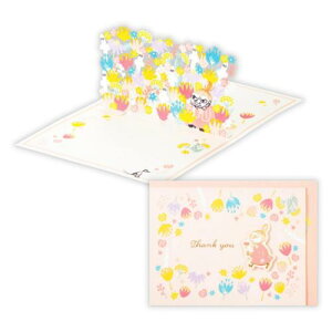 贈ってももらっても楽しいメッセージカードサンクスカード 有難う 家族 お友達 贈り物カラフルな花とリトルミイがあたたかな気持ちにさせてくれるサンキューカード贈ってももらっても楽しいグリーティングカードこちらは箔加工ががとっ